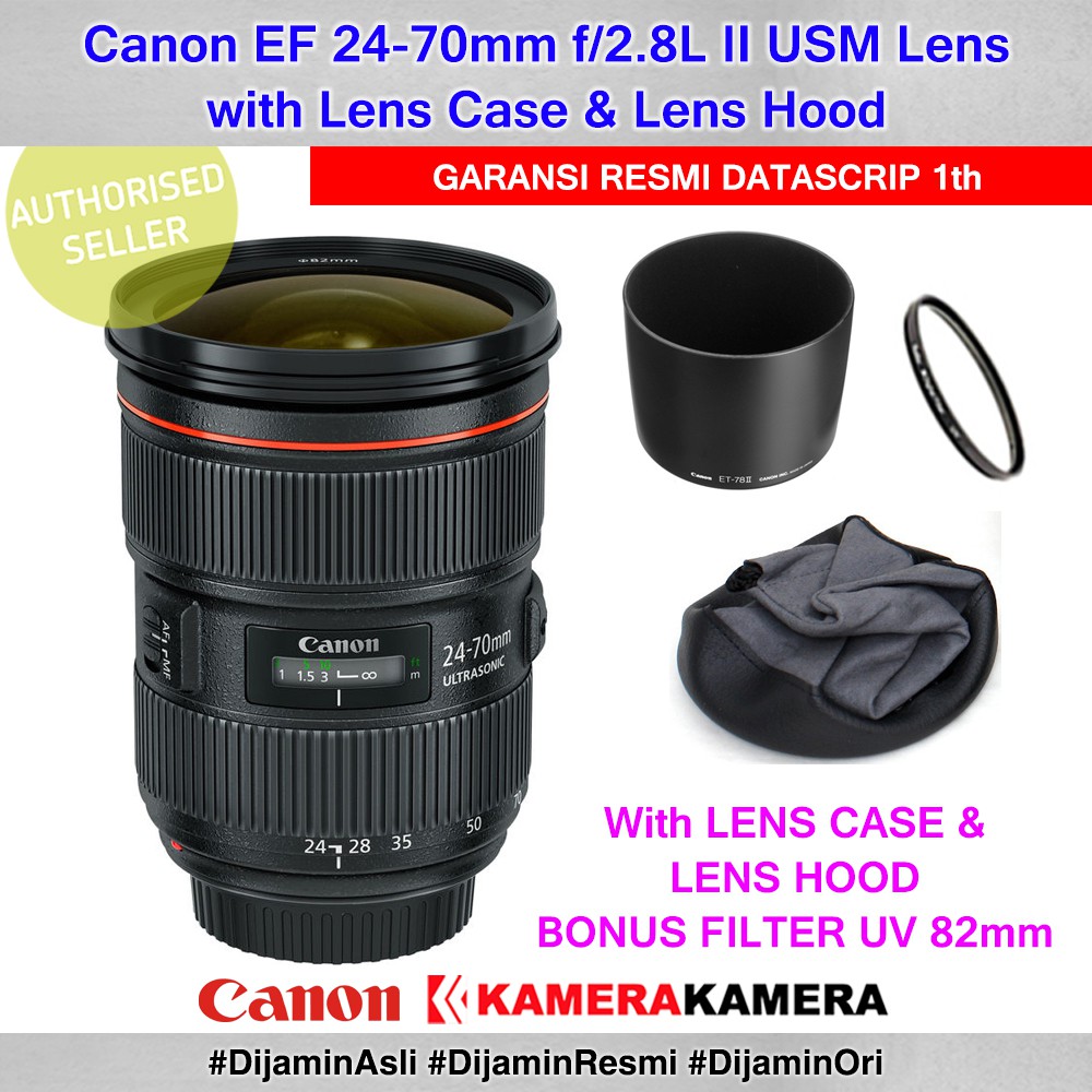 lensa canon ef 24 70mm f 2 8l ii usm resmi datascrip lens case lens hood filter uv 82mm
