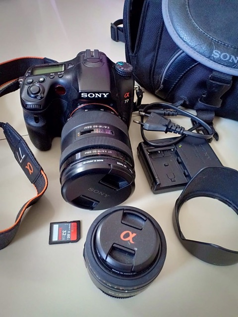 kamera sony dsrl a77 lensa 2 8 16 50 lensa 1 8 50 kelengkapannya