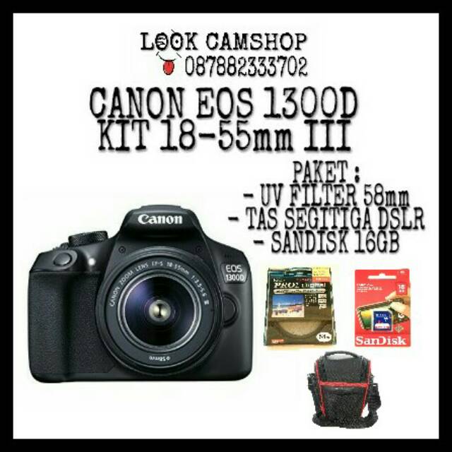 kamera dslr canon eos 1300d 1300 d kit 18 55mm is ii paket 16gb uv filter tas