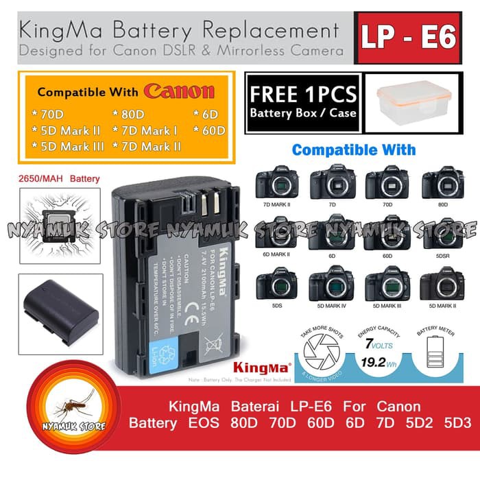 2pcs 2650mah 7 4v lp e6 lpe6 camera battery for canon lp e6 eos 5ds 5d mark ii 6d 7d 60d 70d 80d
