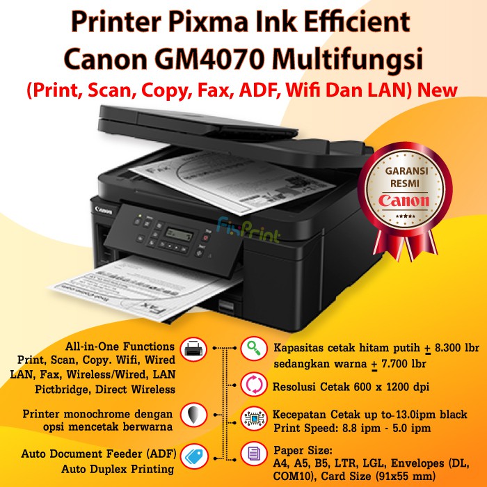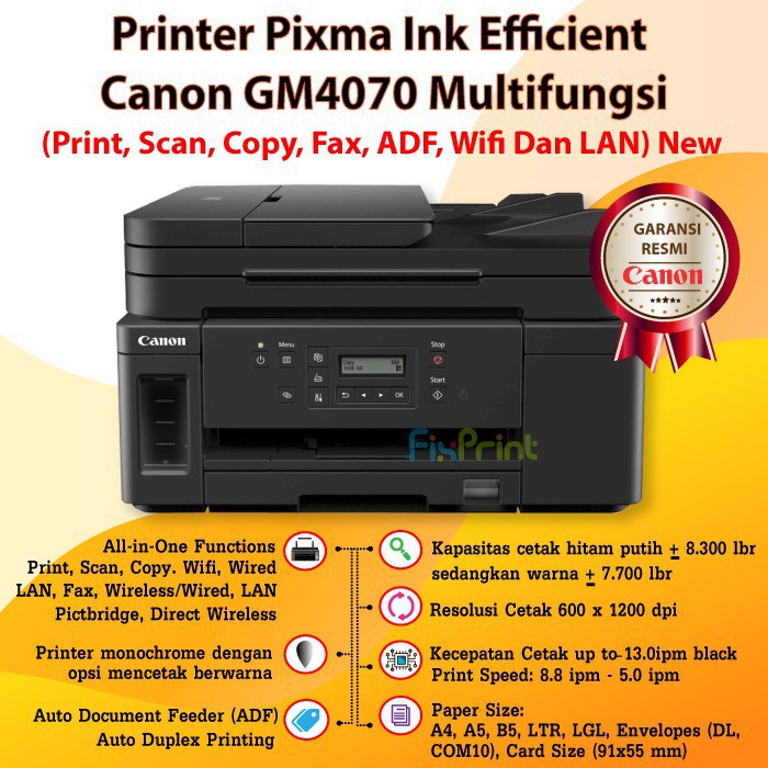 printer canon pixma gm4070 gm 4070 all in one multinfungsi new di fixprint jakarta tokopedia