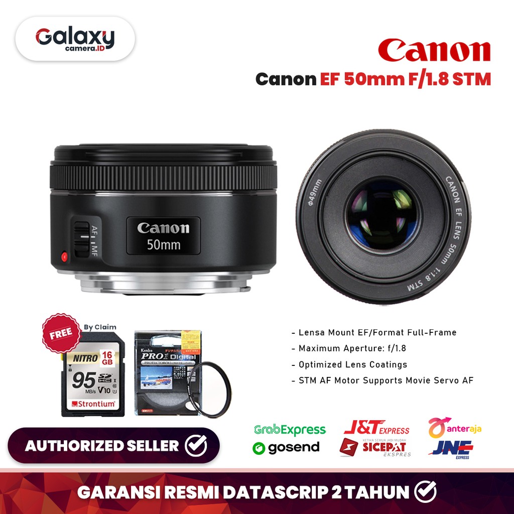 lensa fix canon ef 50mm f 1 8 stm garansi 1 tahun
