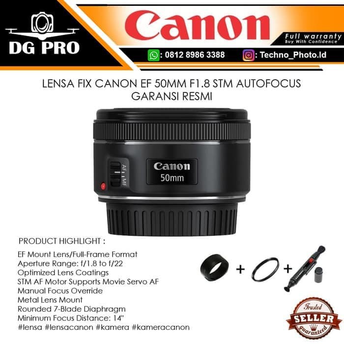 lensa fix canon 50mm f1 8 stm lensa canon dslr kamera resmi datascrip