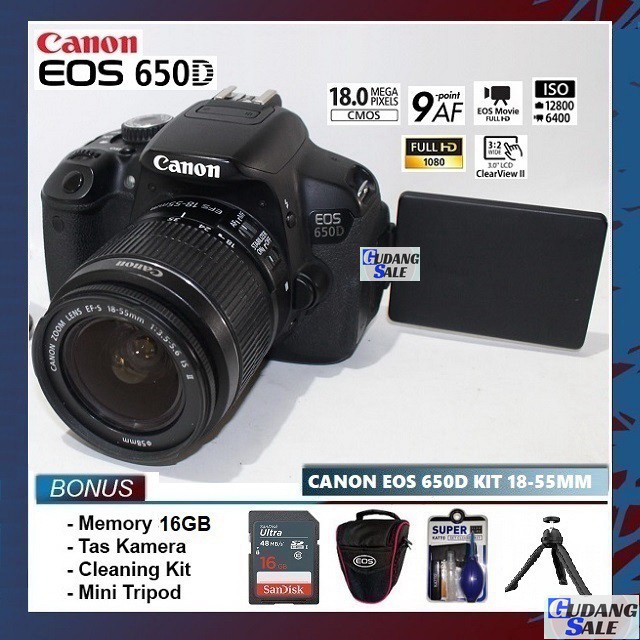 canon eos 650d kit 18 55mm is ii original paket lengkap 16gb 32gb 64gb