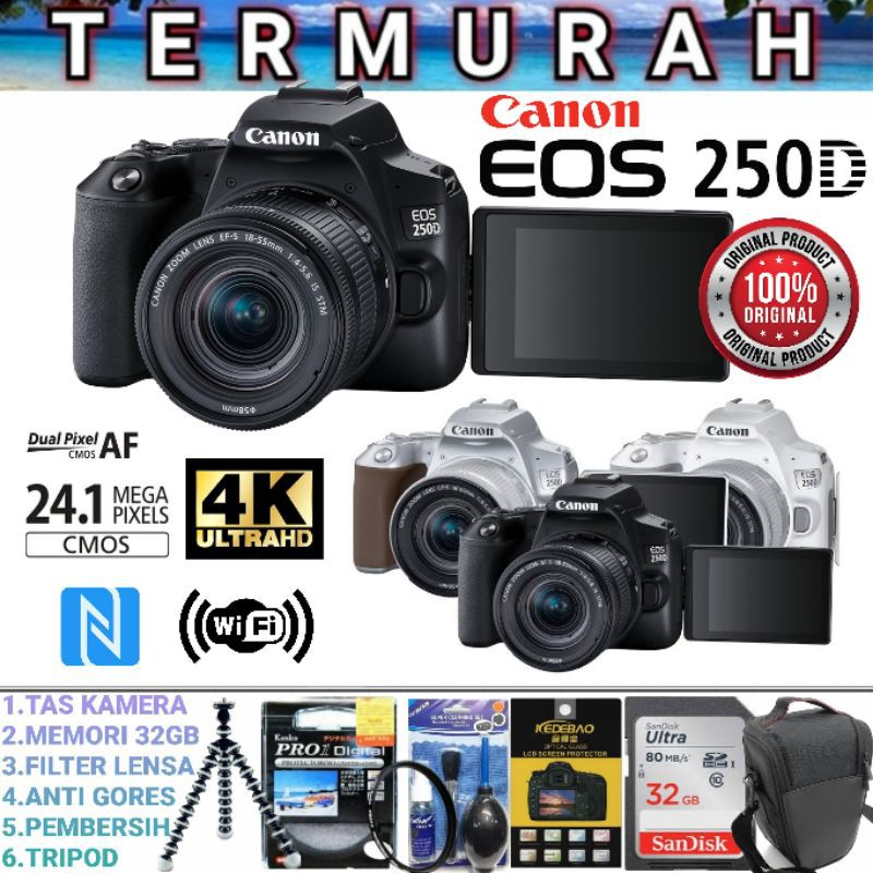 camera canon 250d lensa 18 55mm garansi 1 tahun