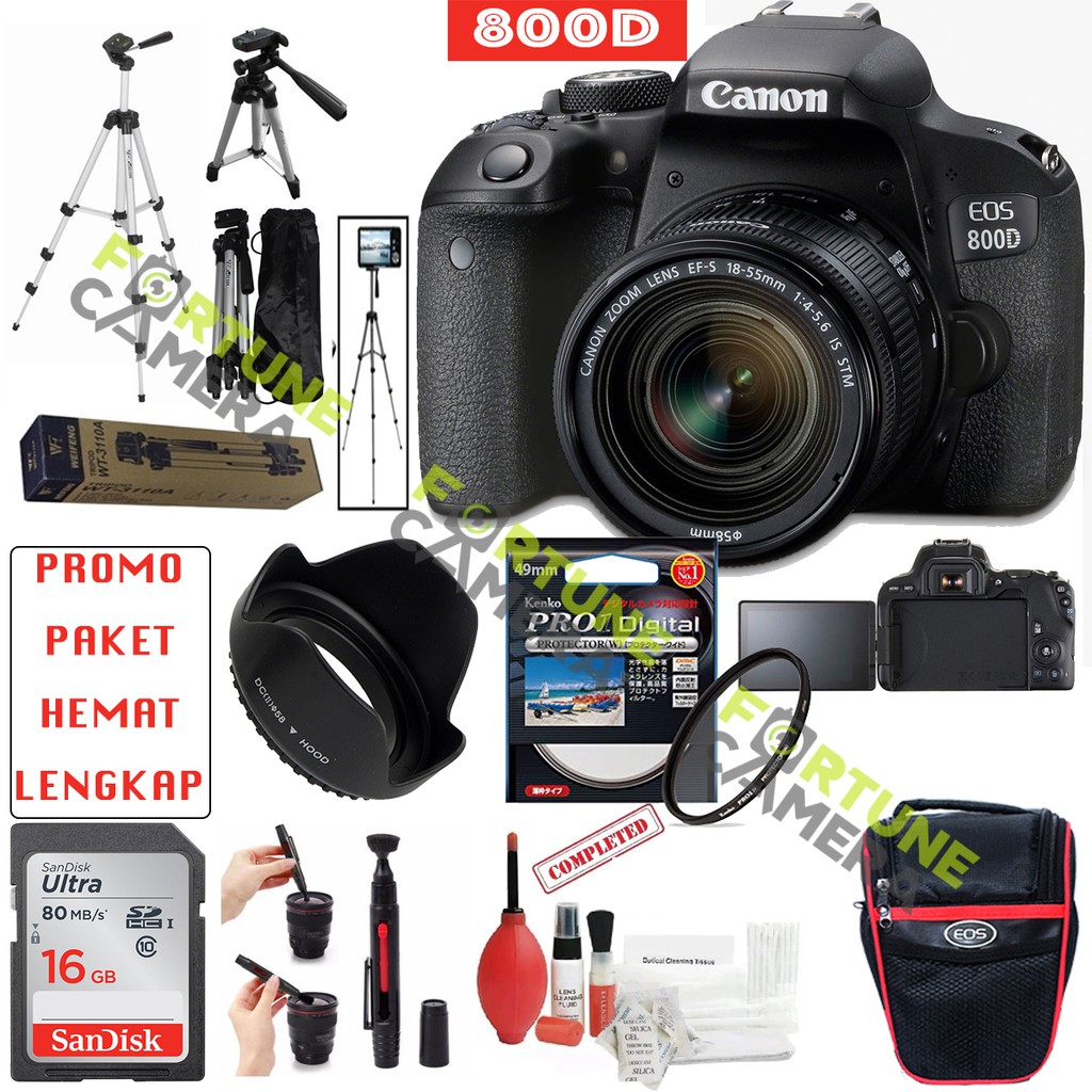 canon eos 800d kit 18 55 is stm paket bundling accesories