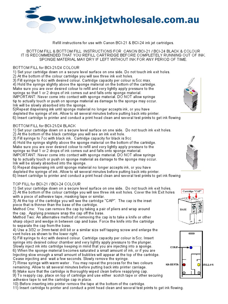 refilling canon bci 21 bci 24 ink cartridges