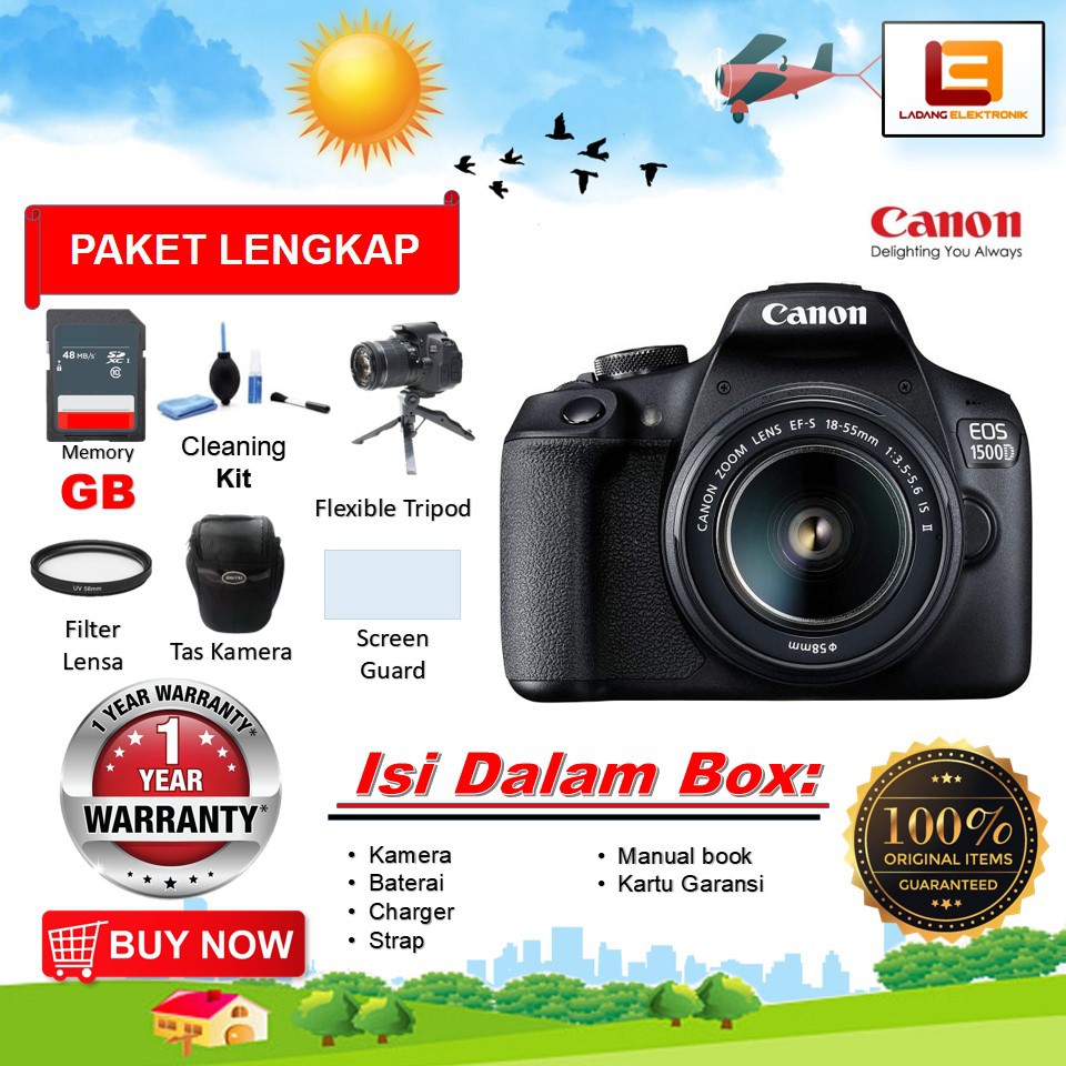 canon eos 1500d kit 18 55mm is ii 24mp kamera slr canon 1500d