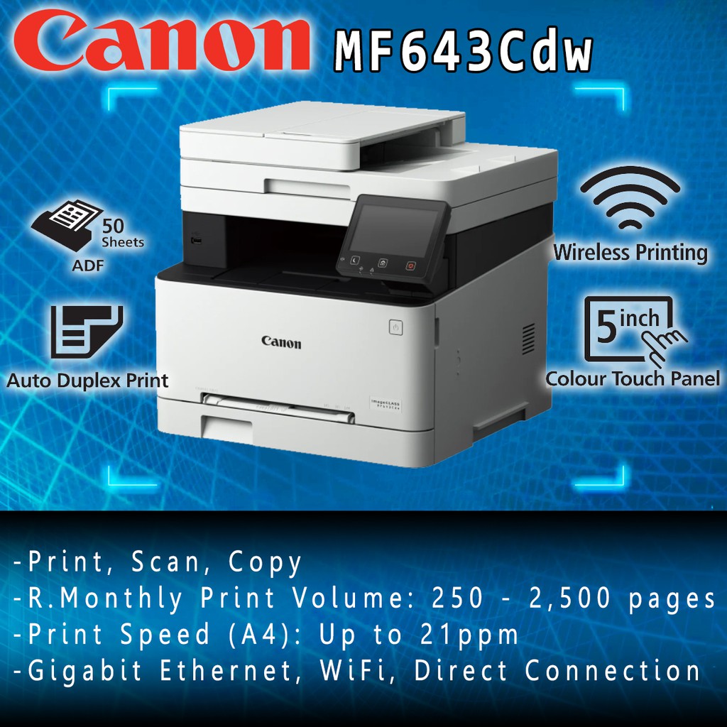 canon imageclass mf643cdw a4 color laser printer print scan copy duplex usb lan wifi replacement of mf633cdw