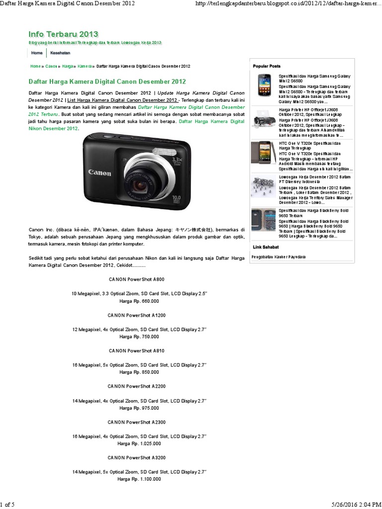 info terbaru 2013 daftar harga kamera digital canon desember 2012