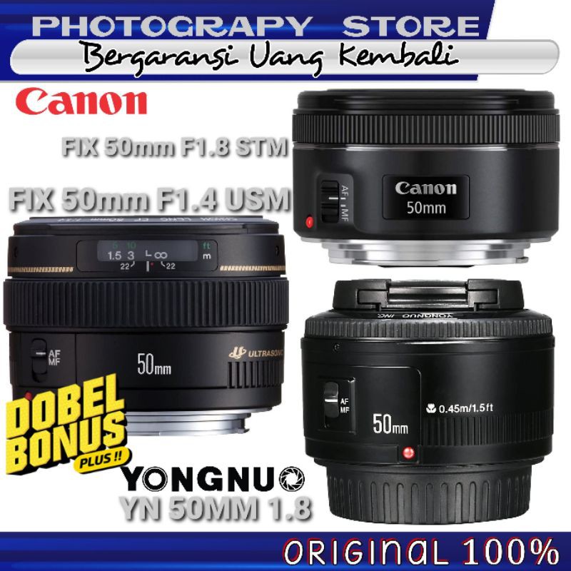 lensa fix canon ef 50mm 1 4 dan 1 8 stm yongnuo yn 50mm f 1 8 baru bergaransi