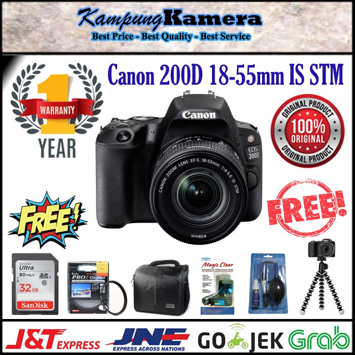 Canon offers a wide range of compatible supplies and accessories that can enhance your user experience with you eos rebel sl3 ef s 18 55mm is stm lens kit that you can purchase direct. Packing a 24mp aps c sensor digic 7 processor and dual pixel af it promises a lot of bang for the buck. It was announced on 28 june 2017 with a suggested retail price of us 549 for the body and us 699 with the canon ef s 18 55m f 4 5 6 is stm lens. See full canon eos 200d specification.