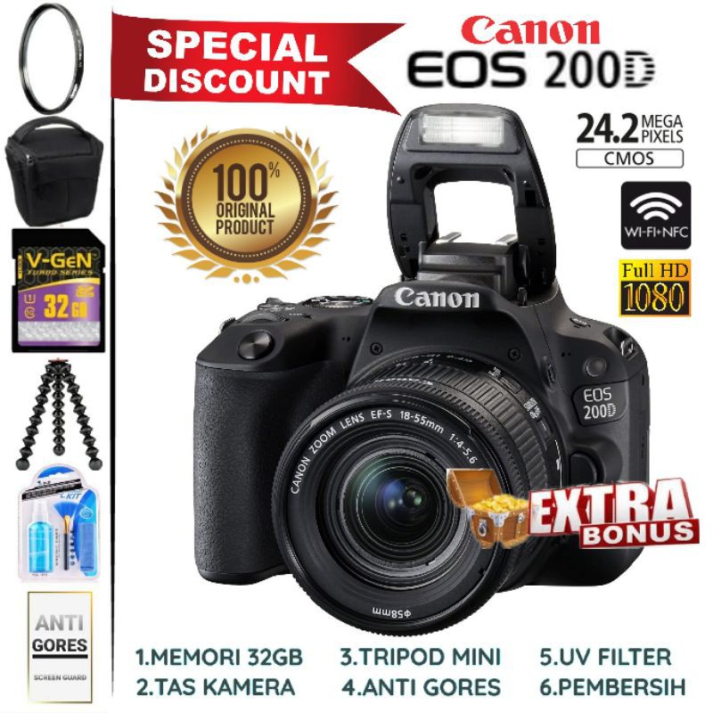 kamera kamera canon eos 200d kit 18 55 is stm di aminshop dll tokopedia