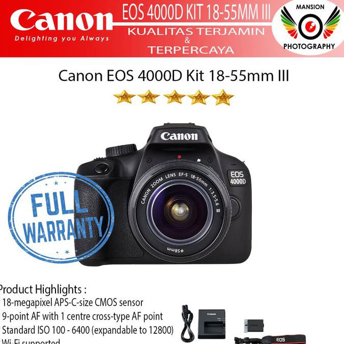 canon eos 4000d kit ef s 18 55mm iii canon 4000d dslr hitam