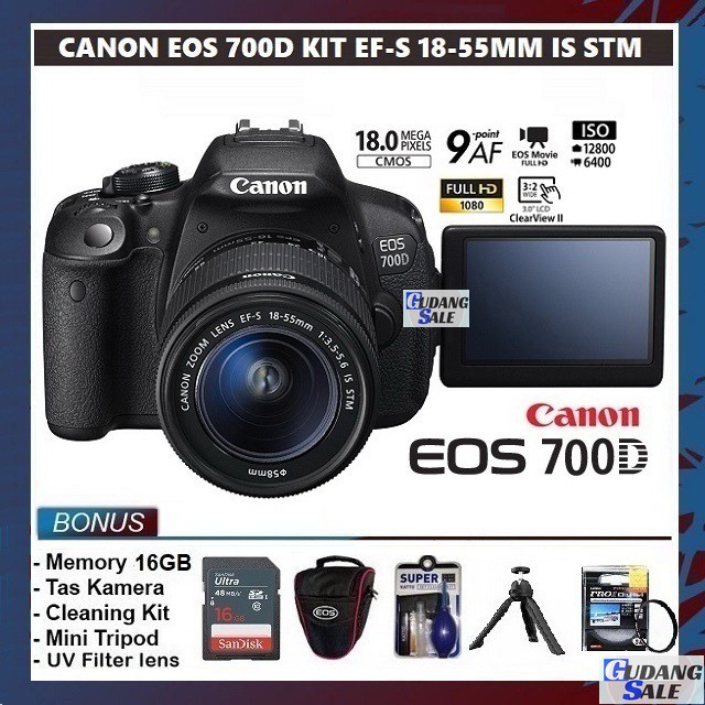new kamera canon eos 700d lensa kit 18 55mm is stm garansi 1 tahun camera dslr 600d m100 m10