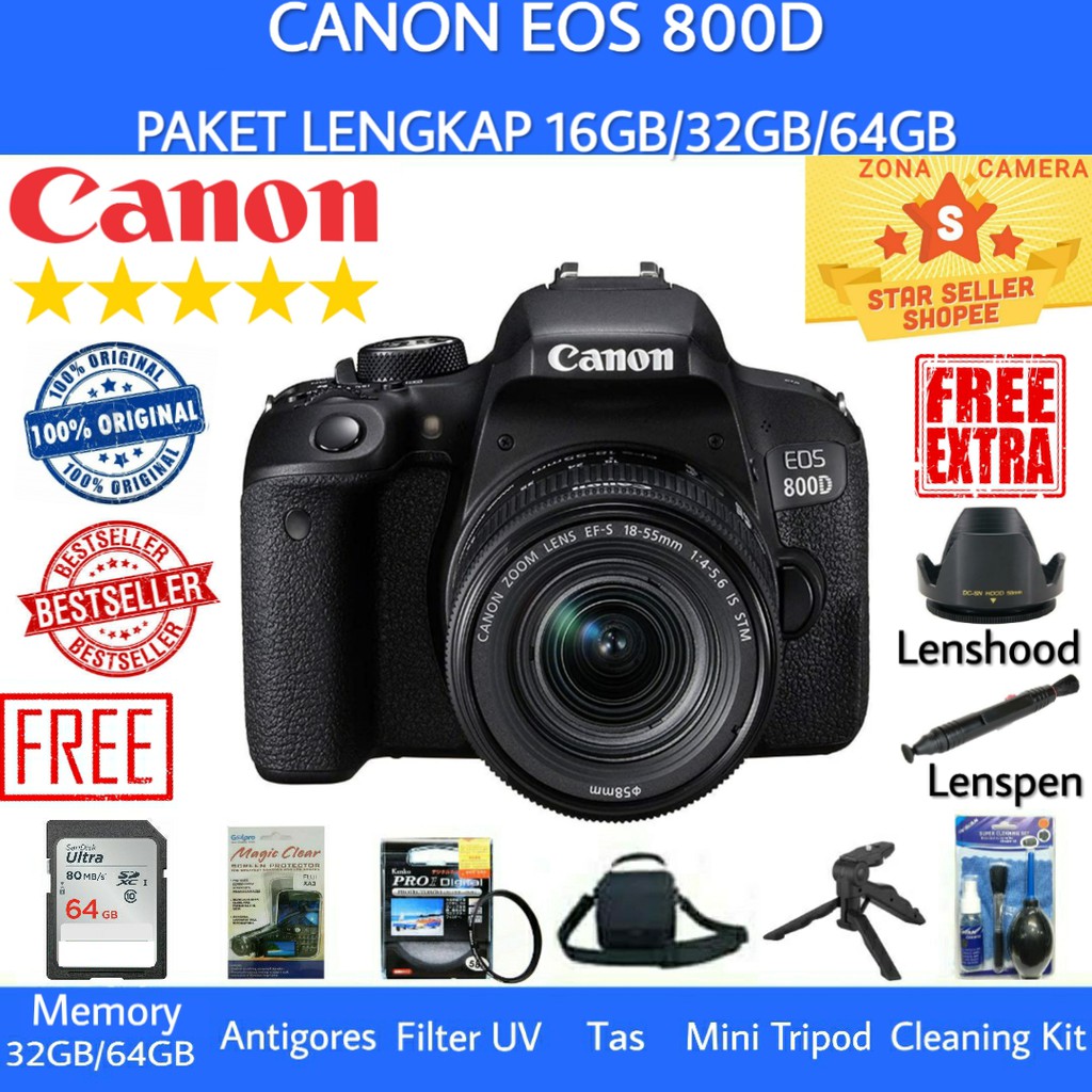 bisa cod canon eos 800d kit 18 55mm is stm harga paketan