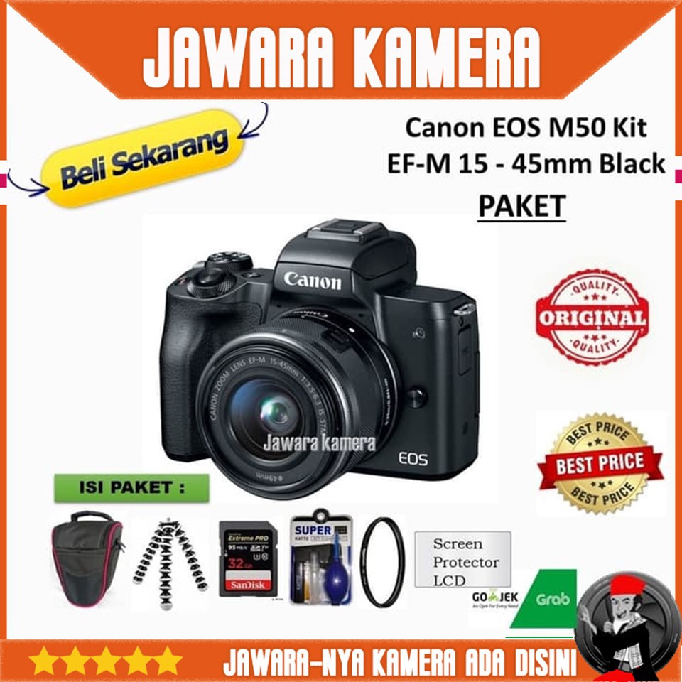canon eos m50 kit ef m 15 45mm black paket kamera vlog