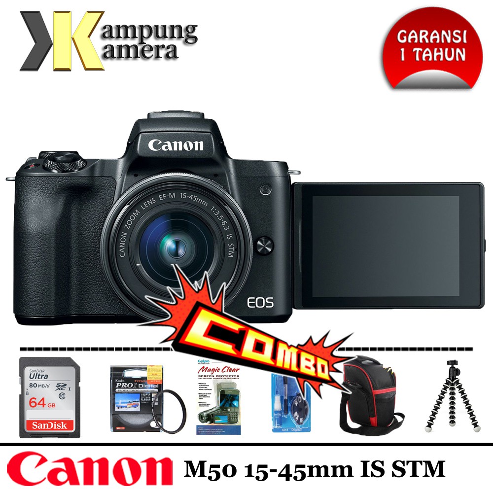 canon eos m50 kit 15 45 mm kamera mirrorless canon paket lengkap