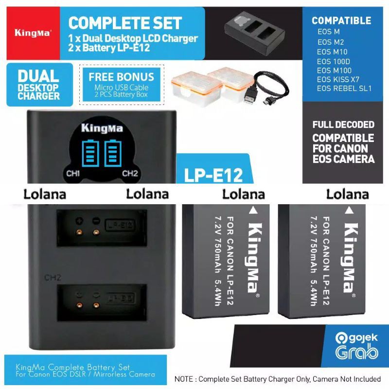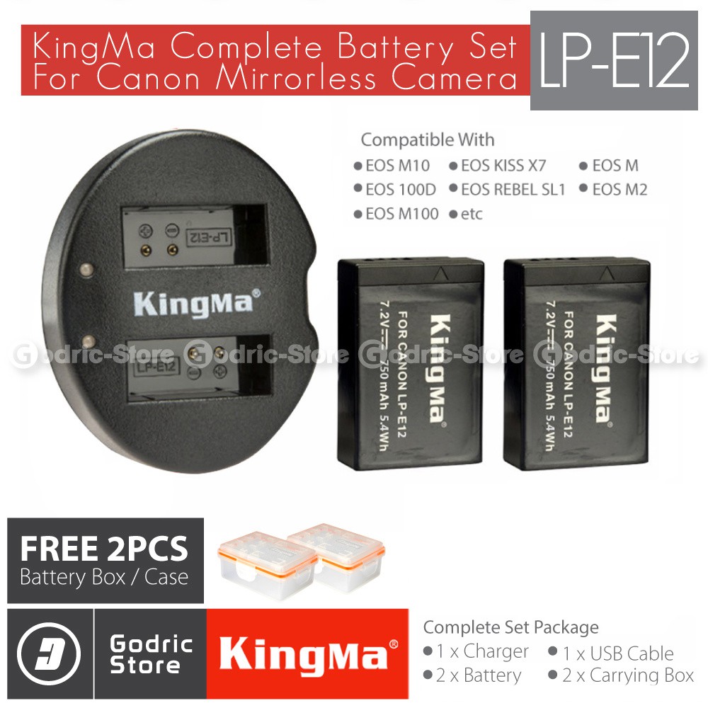 kingma paket complete battery charger set lp e12 baterai canon eos m m2 m10 m50 m100 100d rebel sl1 etc
