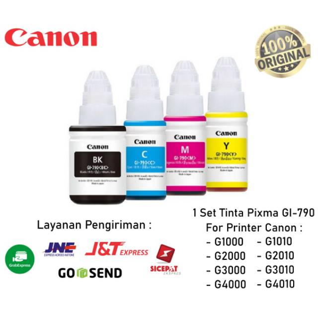 paket 1 set tinta canon pixma gi 790 b c m y untuk g1000 g1010 g3000 g3010 g4000 g4010
