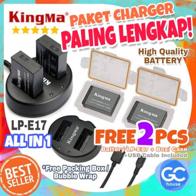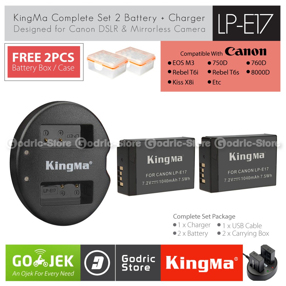 kingma dual charger lp e17 canon battery lpe17 kamera eos m3 750d 8000d t6i t6s slr dslr paket
