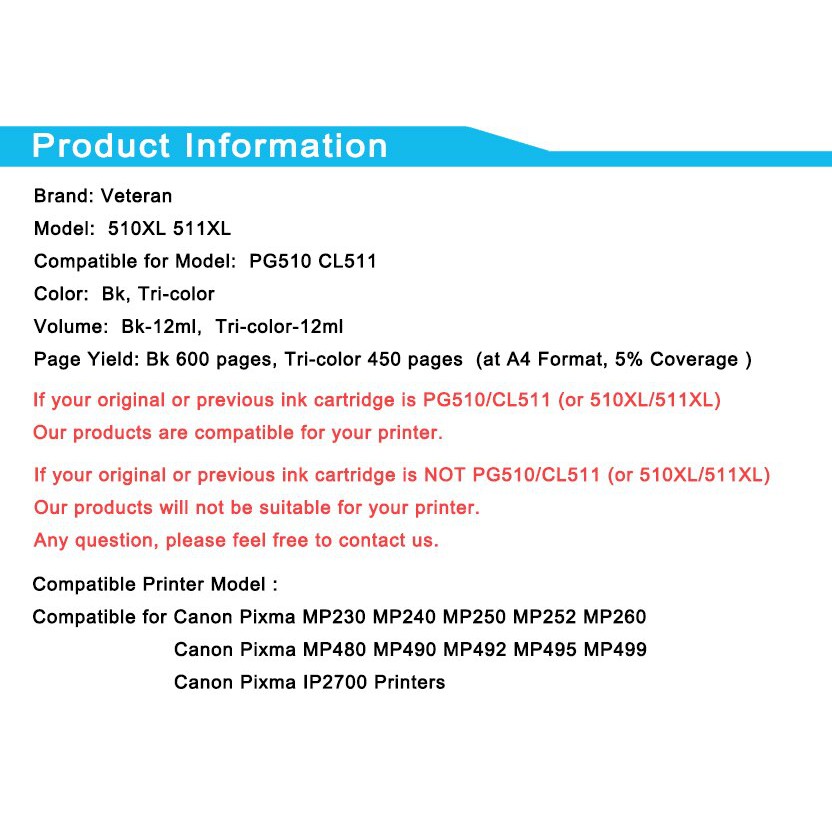 termurah pg510xl cl511xl pg510 ink cartridge for canon mp240 mp250 mp260 mp280 mp480 mp490 ip2700