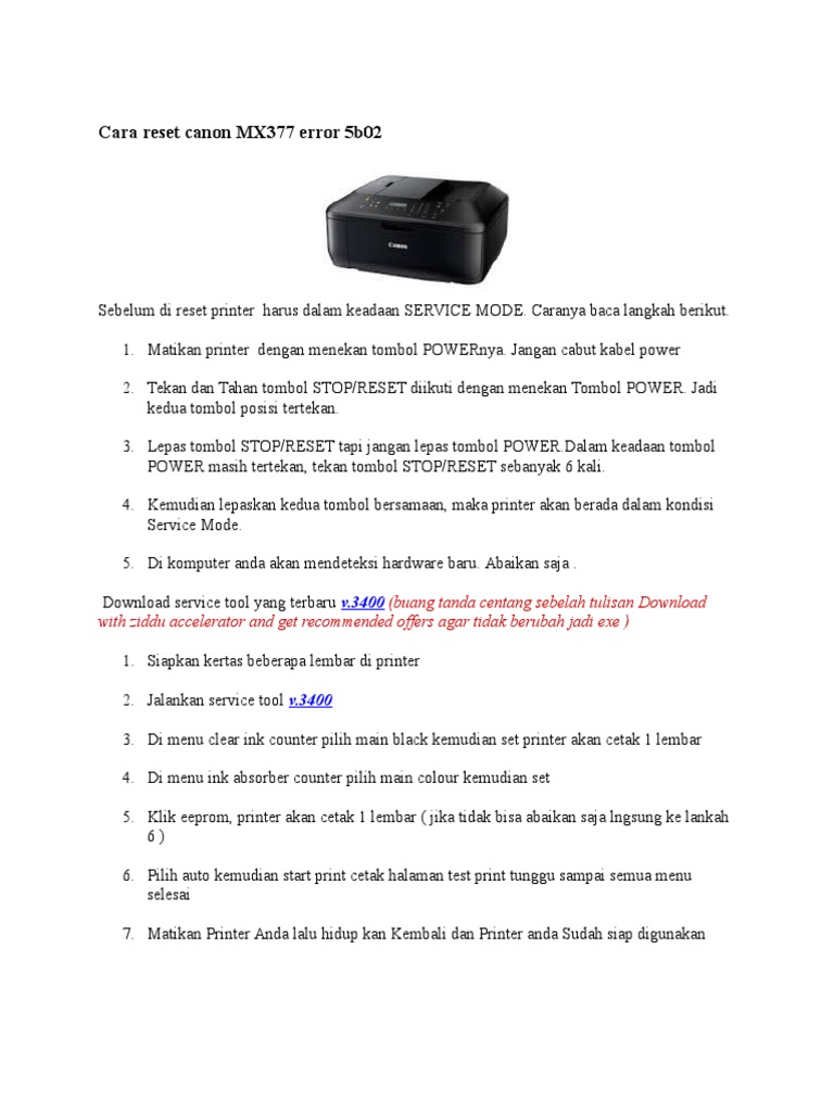cara reset printer canon pixma mx370