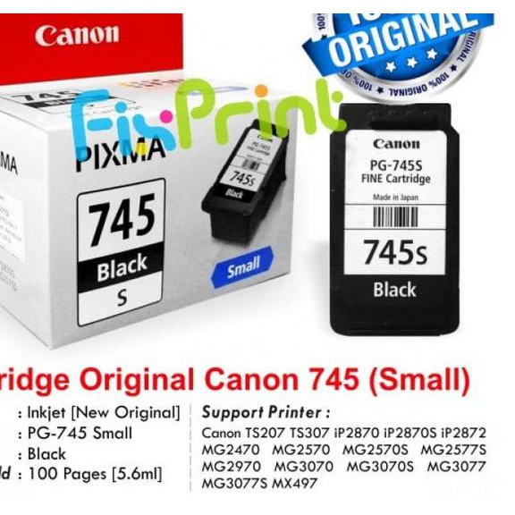 cartridge original canon small pg 745s pg745s 745 black tinta printer di fixprint store tokopedia