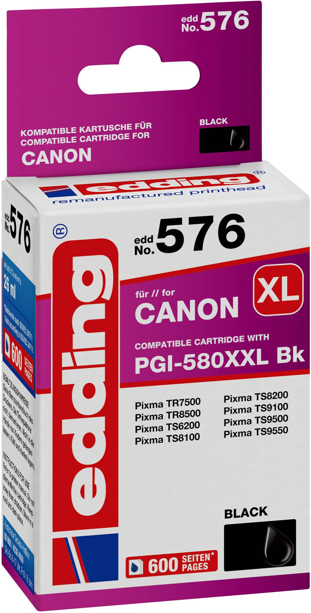 canon pgi 580pgbk xl high capacity black pigment ink cartridge 123ink version