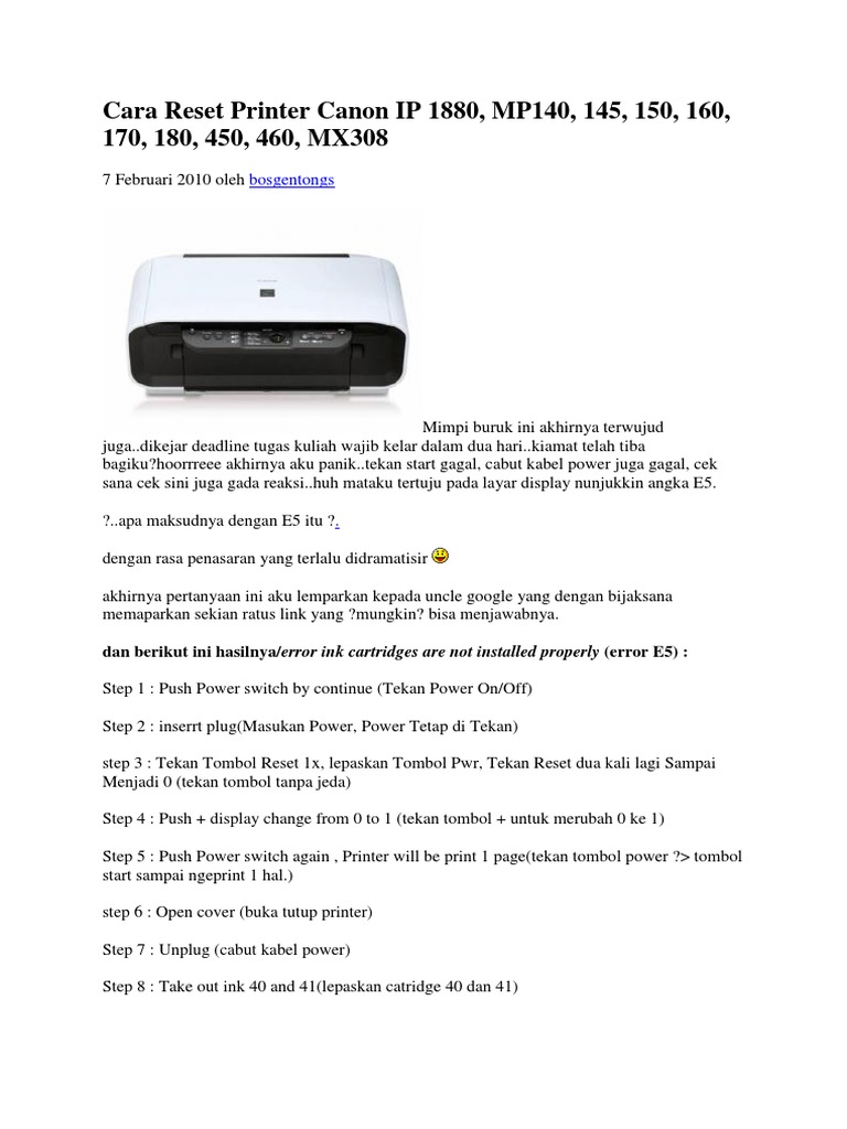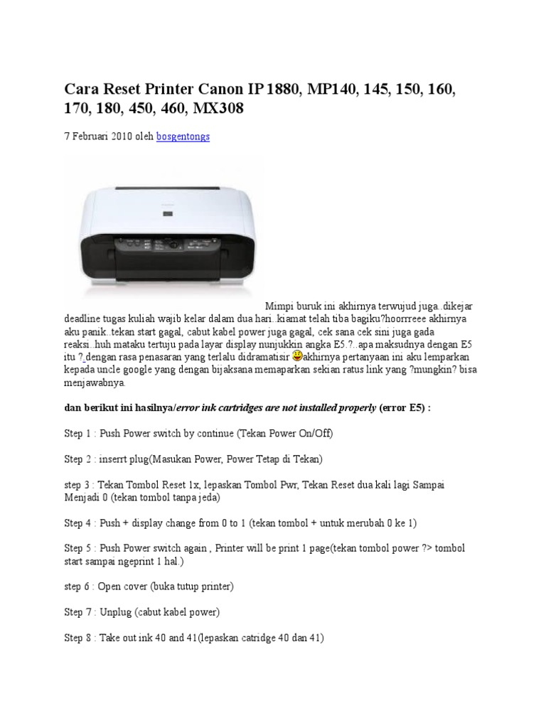 cara reset canon mp145 canon mp145