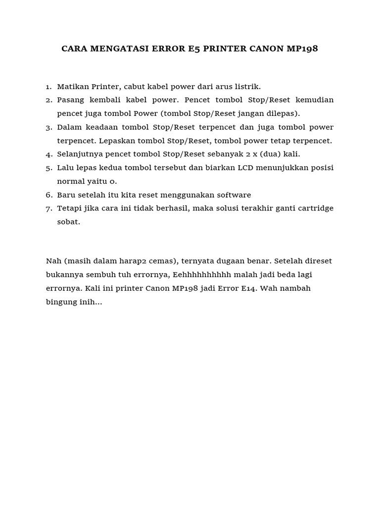 cara mengatasi error e5 canon mp198