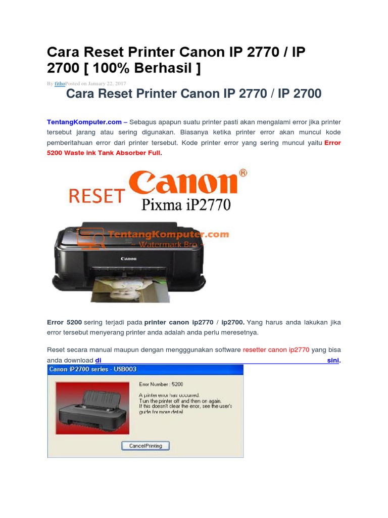 cara reset printer canon ip 2770