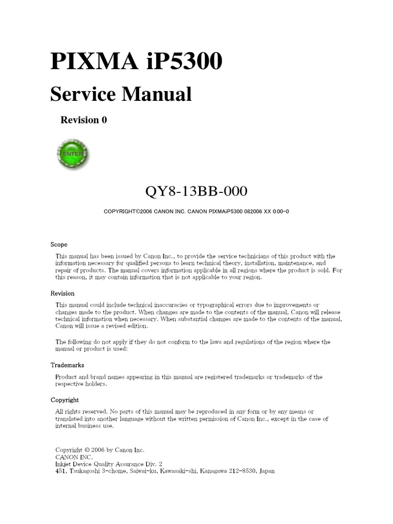 how to reset canon pixma ip5300 error