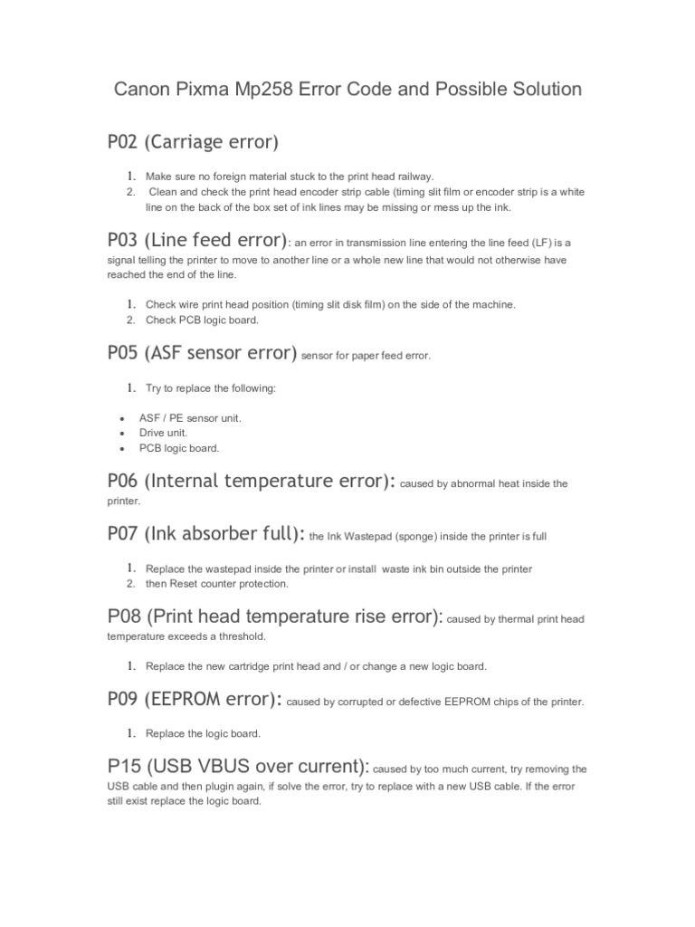 canon pixma mp258 error code and