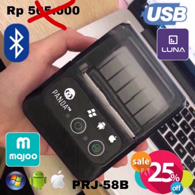 mini portable mobile reciept pos printer panda prj 58b 58mm kertas kasir ppob thermal usb bluetooth