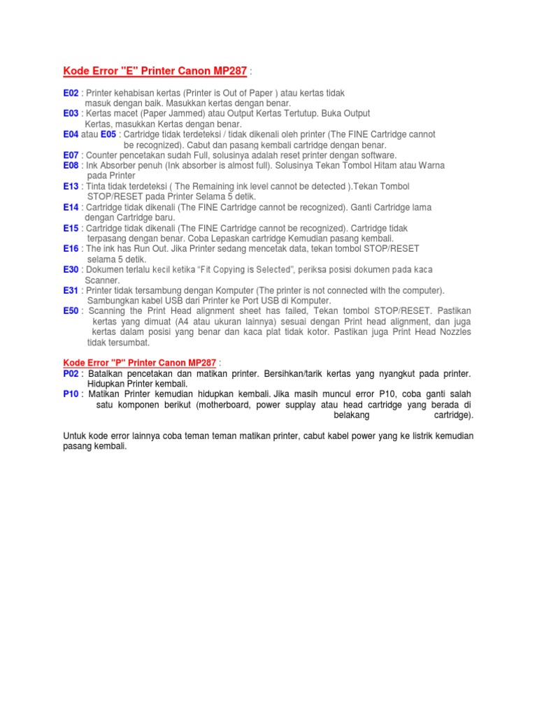 daftar error printer canon mp237 yang