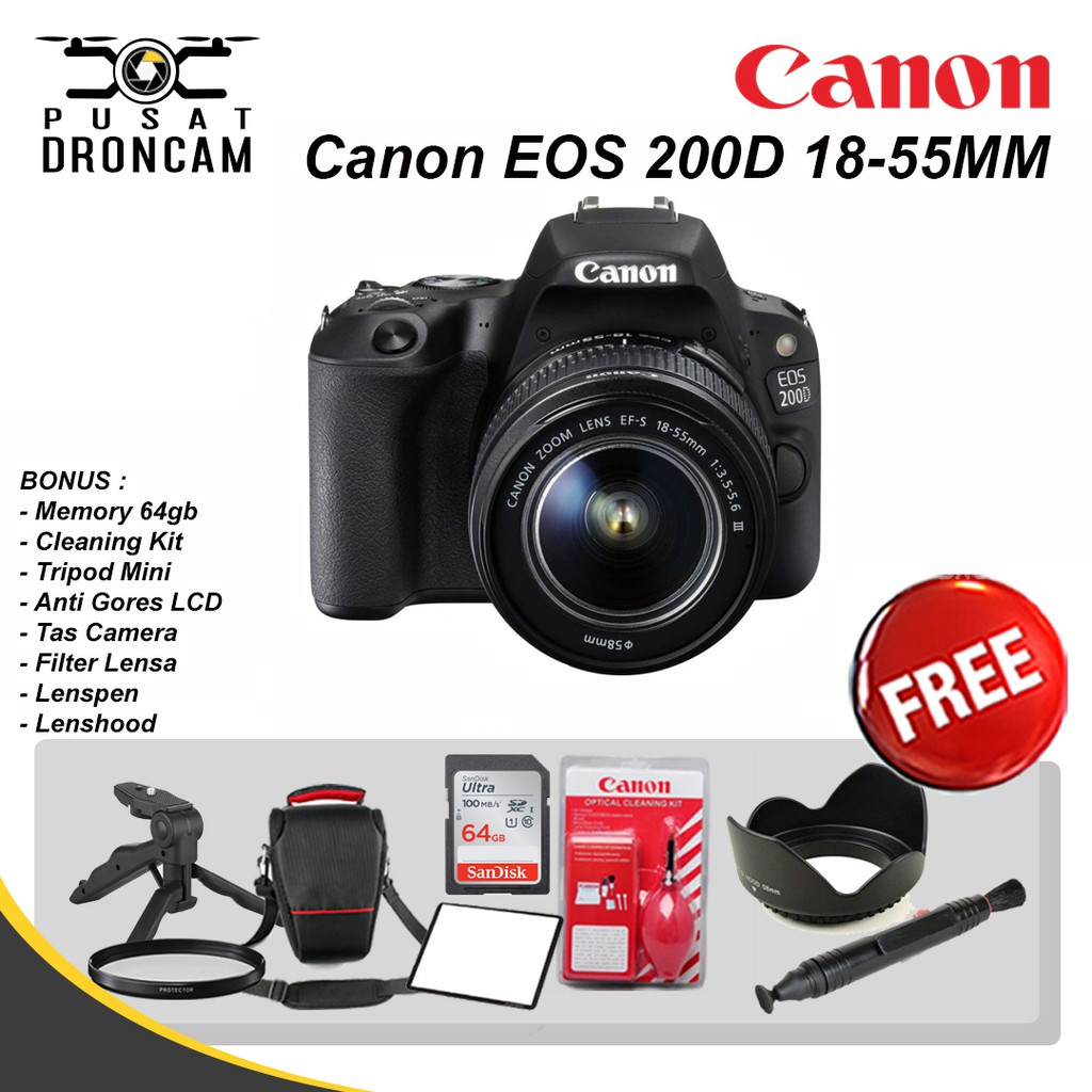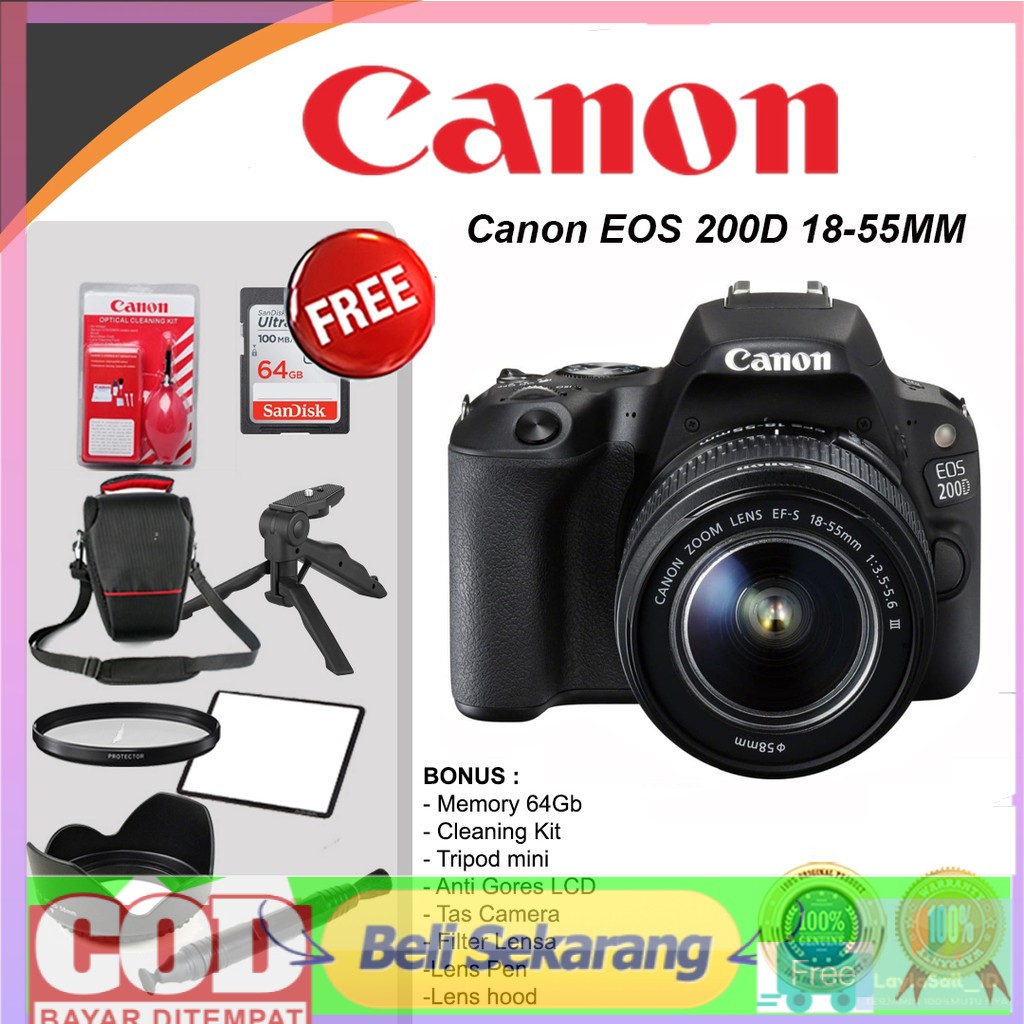 canon eos 200d kit 18 55mm iii wifi kamera canon eos 200d dslr hitam