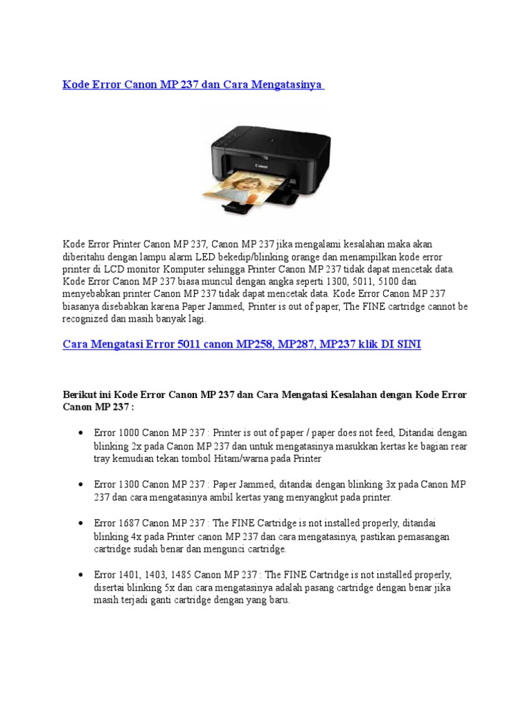 service printer canon mp 237 error 1401
