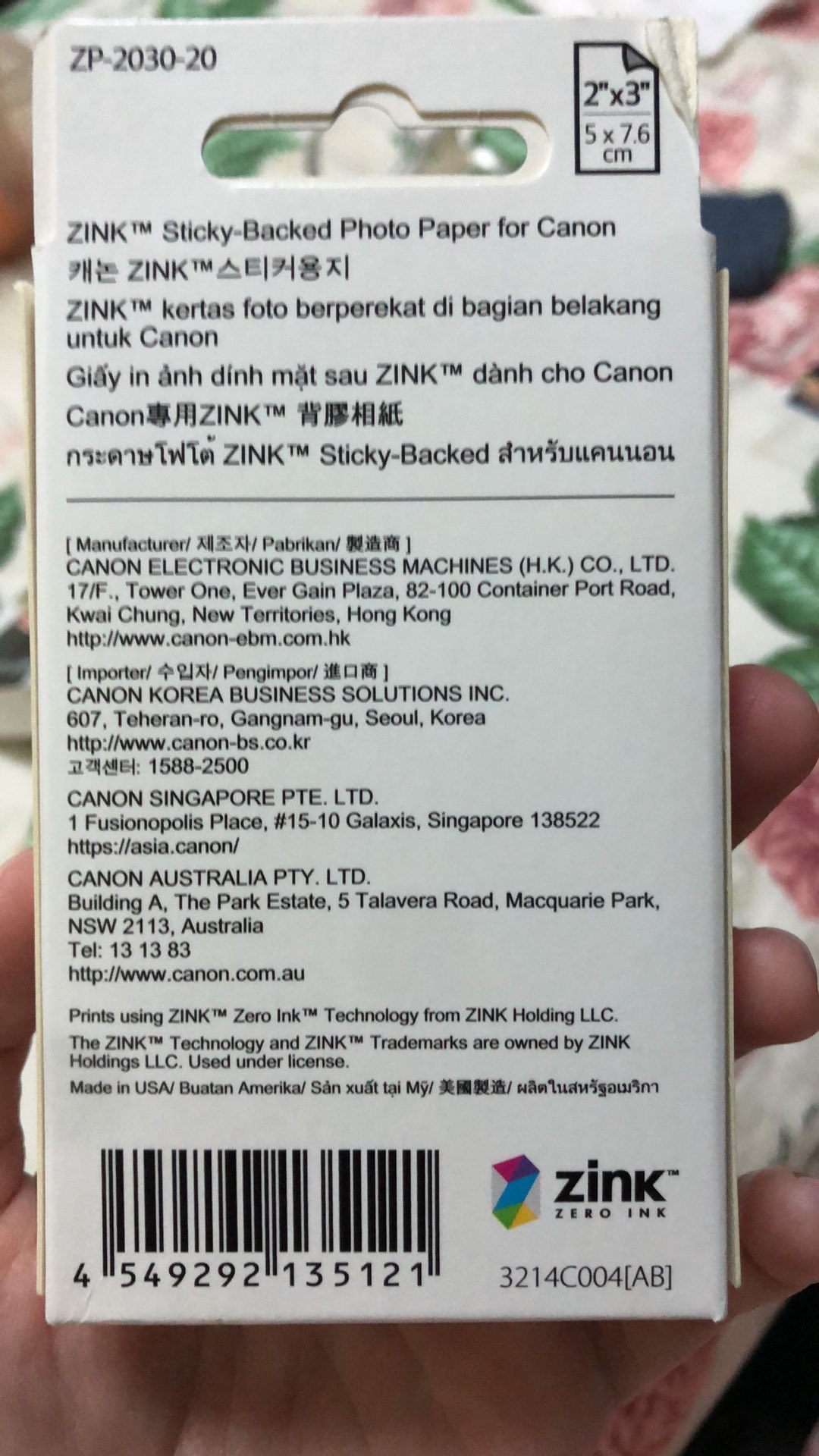 佳能 canon zp 2030 zink 相片紙 香港行貨