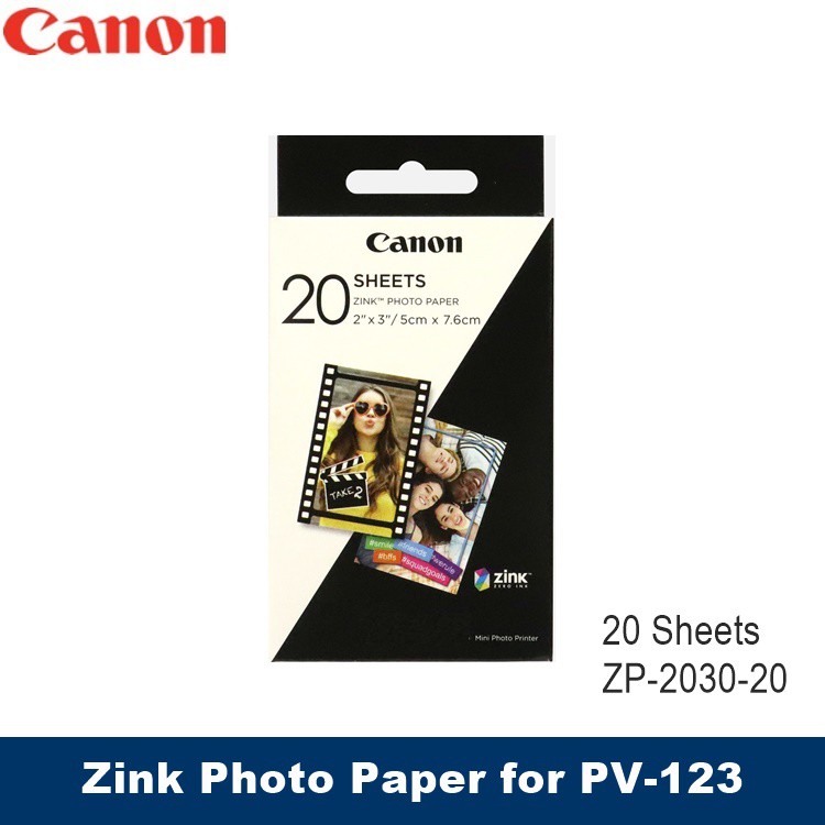 canon original zink photo paper pack 20 sheets zp 2030 20 for mini photo printer pv123