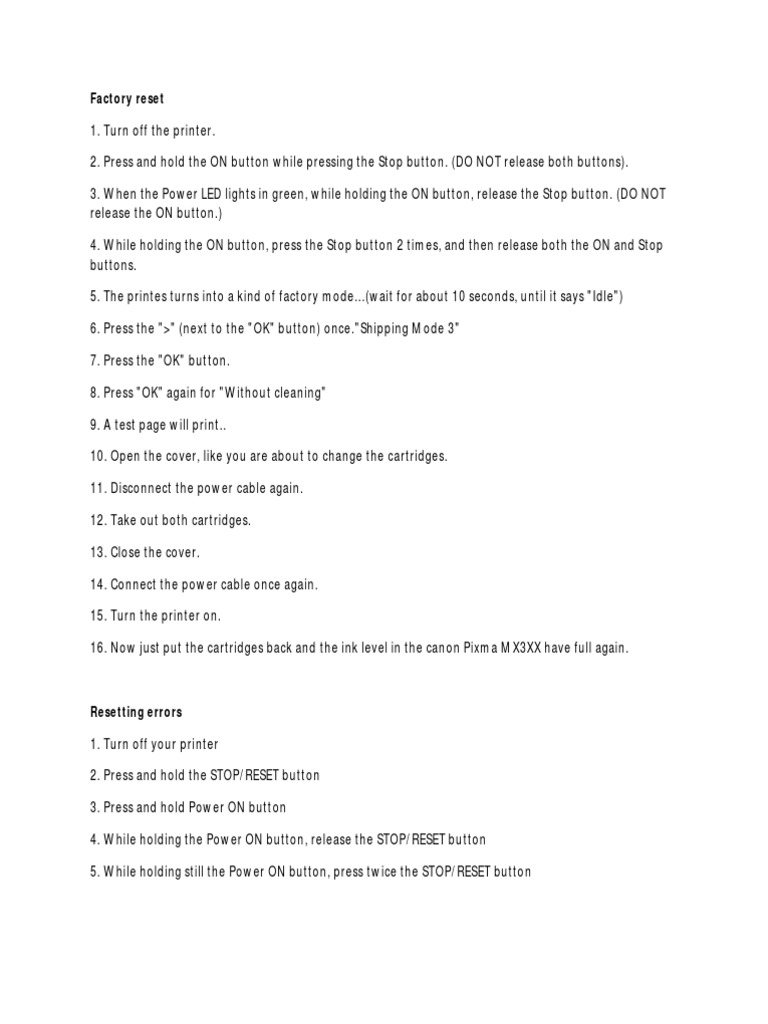 how to reset canon pixma printer 1 844